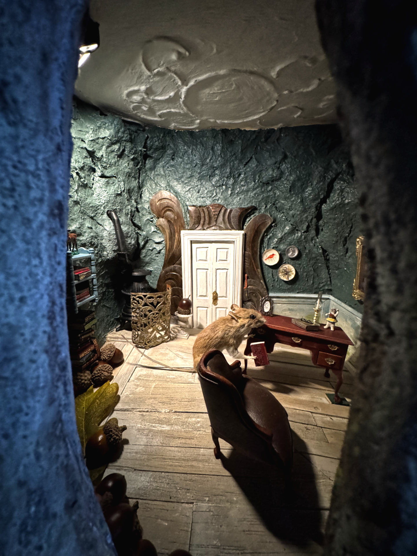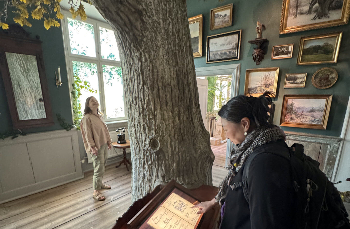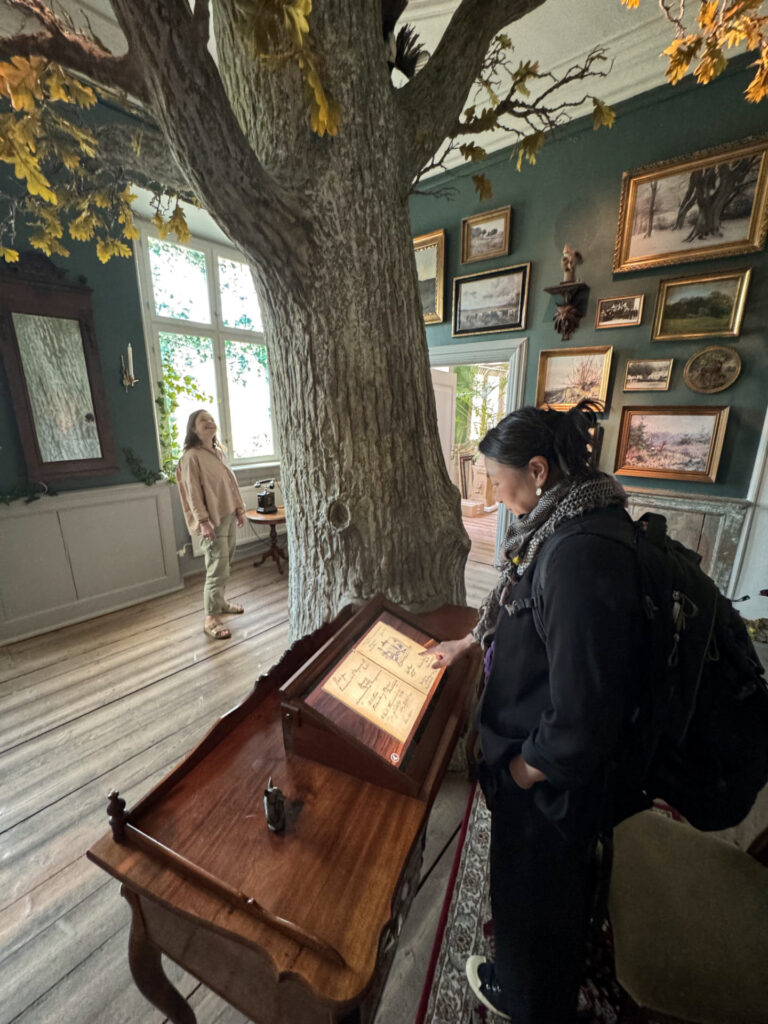 Sanselig oplevelse i eventyrlig scenografi med interaktivt design. Lyt til fortællinger via en gammel telefon og bladr i en magisk udgave af den historiske gæstebog.